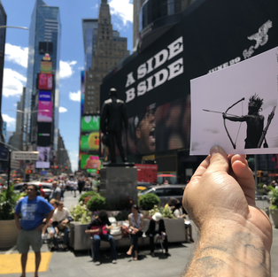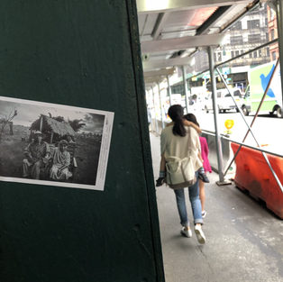 Nova Iorque é conhecida como a capital do mundo. Milhares de pessoas tem o sonho de conhecer a cidade. Tive a oportunidade de visitar NY por duas vezes. Nunca entendi de fato o meu sentimento por ela. Sei que é assustador, o sentimento de solidão em meio há milhares de pessoas que cruzam o espaço urbano a cada segundo. Na minha segunda ida, decidi expor meu trabalho pelas ruas da cidade. Dificilmente teria alguma chance fazer uma exposição em algum museu ou galeria de arte de NY, portanto, através de adesivos, distribuídos em diversos pontos da cidade, pude realizar um dos sonhos de minha vida. Ter uma exposição sobre o Tekoha Guaiviry em Nova Iorque. Por que esse sonho? Muito me questiono sobre o capitalismo predatório x ancestralidade. Como seria se de fato os indígenas Guarani Kaiowá do Tekoha Guaiviry, Mato Grosso do Sul, tivessem a oportunidade de ir até Nova Iorque? Nessa exposição urbana, busco esse questionamento, colocando as obras espalhadas pela cidade. Há muito o que questionar sobre os padrões do "sonho americano". Até onde o consumo nos guiará? Realmente estamos presentes nos espaços urbanos? Prestamos atenção nos detalhes da cidade? Qual seria o status dessa obra se estivesse no museu ou em uma galeria? Poderíamos ocupar cada vez mais as ruas de nossas cidades com arte, ao invés de propagandas? Para essa ação, foram precisos 03 dias, onde circulei por diversas áreas, percorrendo a pé lugares totalmente aleatórios. Foi preciso inclusive, dormir debaixo de banco, debaixo de ponte e entocado num vão de um prédio em obras. O frio era intenso, calculei errado as vestimentas. Tive diversas dificuldades para executar esse trabalho, por conta própria, me colocando em situações de perigo constantemente. A adrenalina move a vontade da ação. Enfim, levei a exposição Tekoha Guaiviry até Nova Iorque, Estados Unidos. Foram mais de 150 adesivos colados pela cidade. Seguem alguns registros da ação.