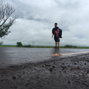 Após o primeiro contato com o motoqueiro, me apresento, ele também. Ele pega uma das 3 mochilas que carrego, sendo essa a de alimentos que estou levando para os índios em sinal de agradecimento por me receberem em sua aldeia e que foram escolhidos gentilmente pela Sandra, professora na faculdade de Dourados que fez todo o primeiro contato com as pessoas certas para tornar essa ida possível, e que me acolheu por quase uma semana, em sua casa em Dourados, até que o contato final fosse estabelecido. Gostaria de agradecer a Sandra e sua filha Dandara (13) pela hospitalidade e pelas longas conversas que tivemos ao longo desses dias. Colocada a bolsa entre as pernas do piloto, subo na moto e logo sou levado até a entrada de uma fazenda, quase 1 km depois. Não muito distante, mas suficiente para me deixar curioso quanto ao local e a lógica que eu tinha construído em minha cabeça “Indios morando em uma fazenda?” acabando aquele romance que eu tinha construído na primeira infância de que índios apenas moravam em cabanas no meio do mato, isolados. Pois, a realidade Guaiviry é diferente: eles foram expulsos de suas terras que foram ocupadas por fazendeiros locais, com conivência do governo ruralista estadual e federal. Esse impasse das terras, por mais que já tenham sido oficialmente demarcadas pela legislação nacional em 1988, se intensifica ao decorrer dos anos, e quase que numa forma de massacre, que leva lamentavelmente ao